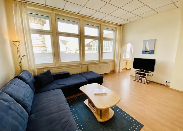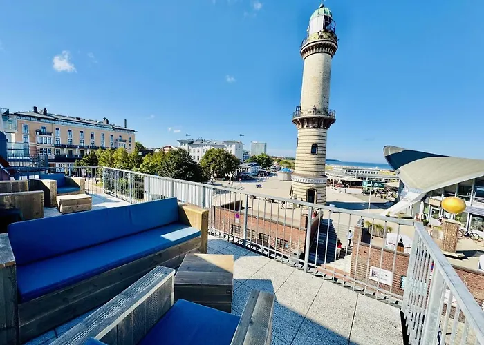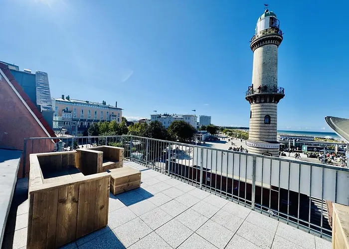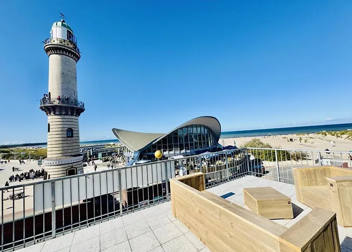 Am Leuchtturm 3Das 80 m^2 große Promenadenblick/Captains-Suite liegt nur 14 Gehminuten vom Strand Strand Warnemuende entfernt und bietet Windsurfen, Bowling und Angeln zum aktiven Zeitvertreib. Das am Strand…Details ansehen+ab
